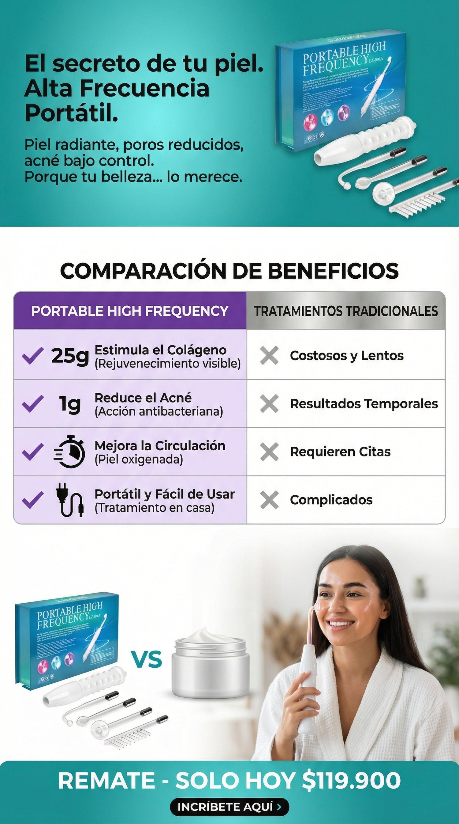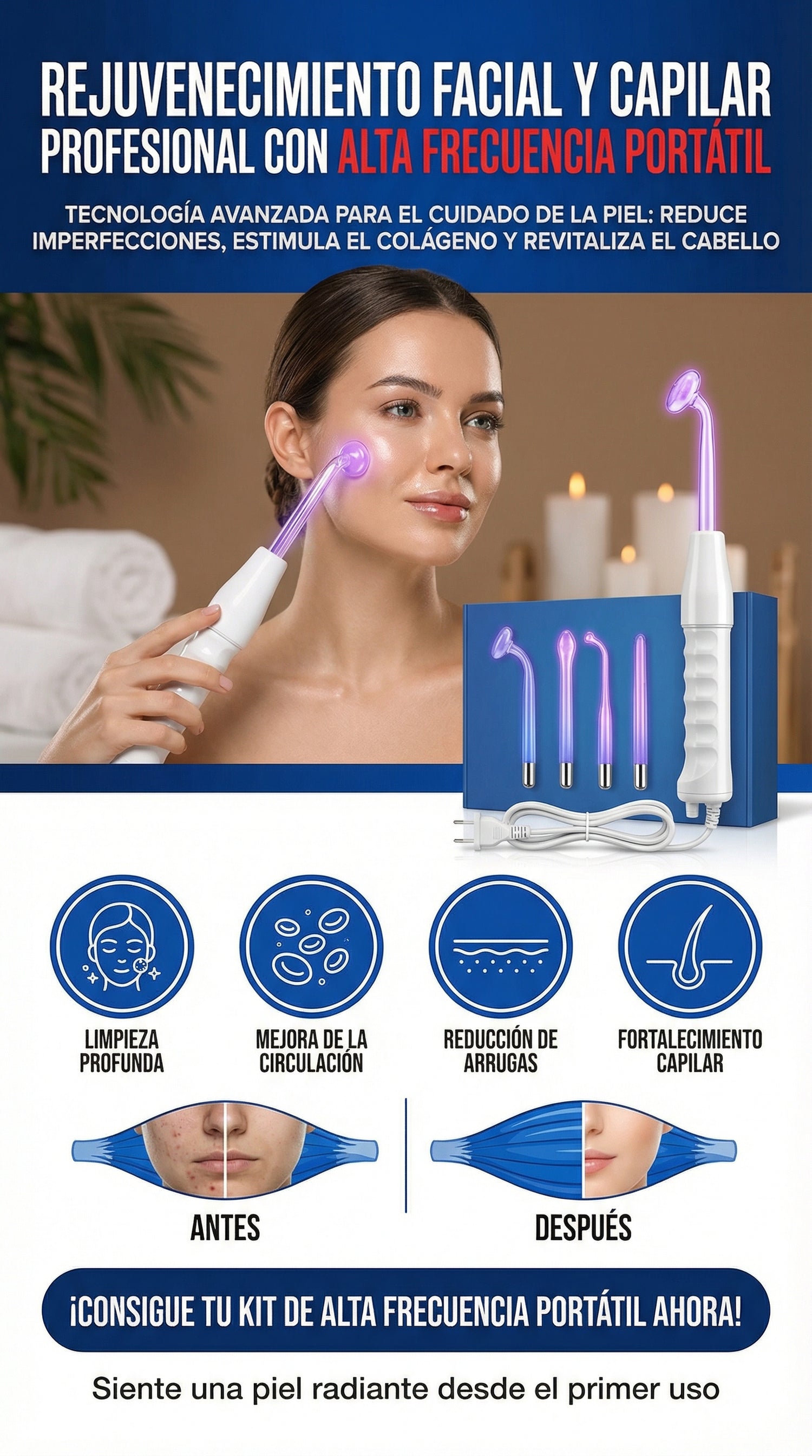 Yo no sabía bien cómo funcionaba la alta frecuencia, pero es súper fácil. Se siente un calorcito leve y la piel queda como más viva. En mi caso me ayudó bastante con el acné y la textura de la piel.