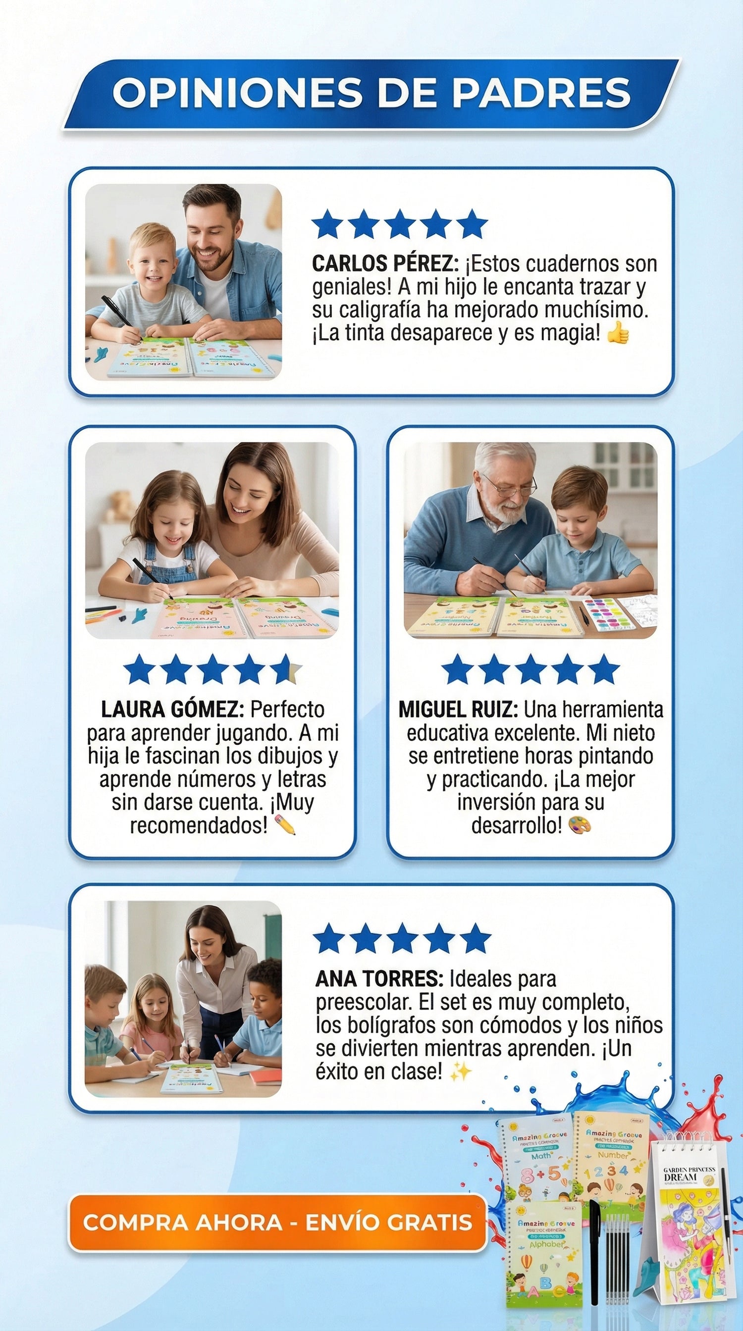 ⭐ "La presentación es hermosa y el contenido muy claro. Ideal para reforzar la escritura en casa".
